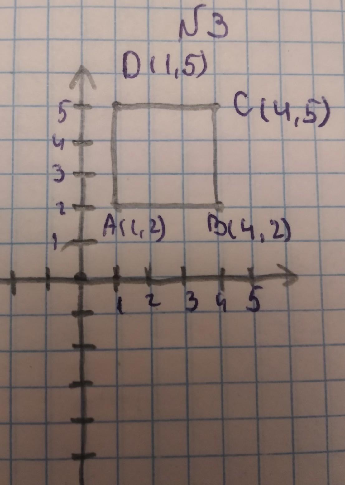 Даны три вершины A(1;2), B(4;2), C(4;5) квадрата ABCD. Найти координаты точки D и построить этот квадрат.С РИСУНКОМ