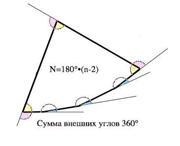 Сумма внутренних углов выпуклого многоугольника вычисляется по формуле
