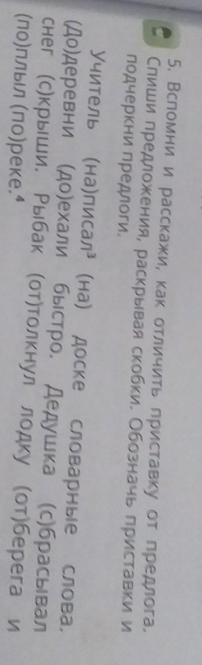 5. Вспомни и расскажи, как отличить приставку от предлога.