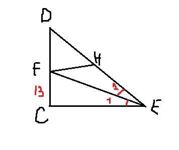 EF- биссектриса ⇒ ∠ 1 = ∠ 2.Следовательно FHE= FCE(по острому углу) ⇒⇒ FH=FC=13