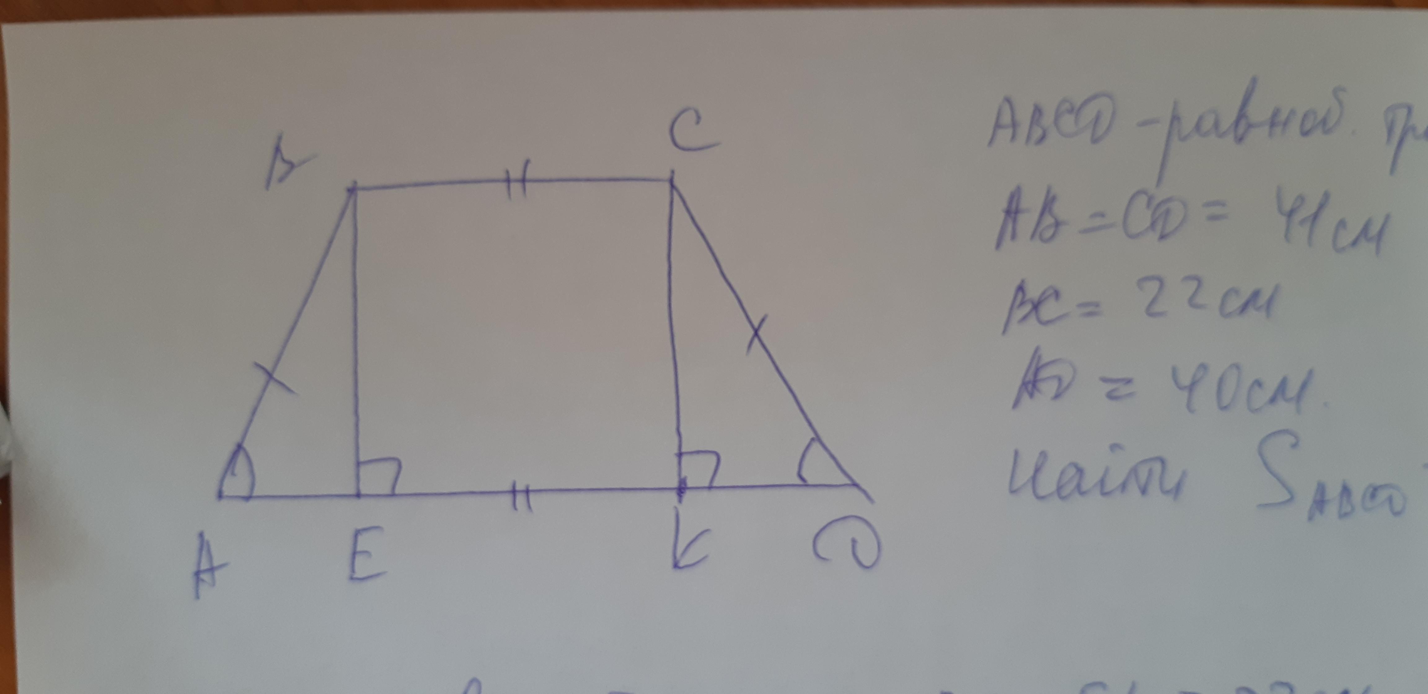 АВСД - равнобедренная трапеция. Строны АВ и СД равны 41 см.
