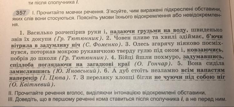 З‘ясуйте чим виражені підкреслені обставини та яких слів вони стосуються, поясніть умови їхнього відокремлення або невідокремлення