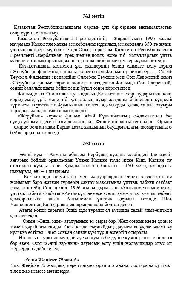 Помогите Соч по Казахскому языку 5 класс , придумайте название на эти два текста пожалуйста