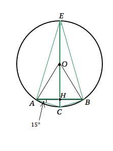 Дано коло, радіус ОС якого перпендикулярний до хорди АВ. Знайдіть кут АОВ, якщо кут ВАС = 15 градусів.