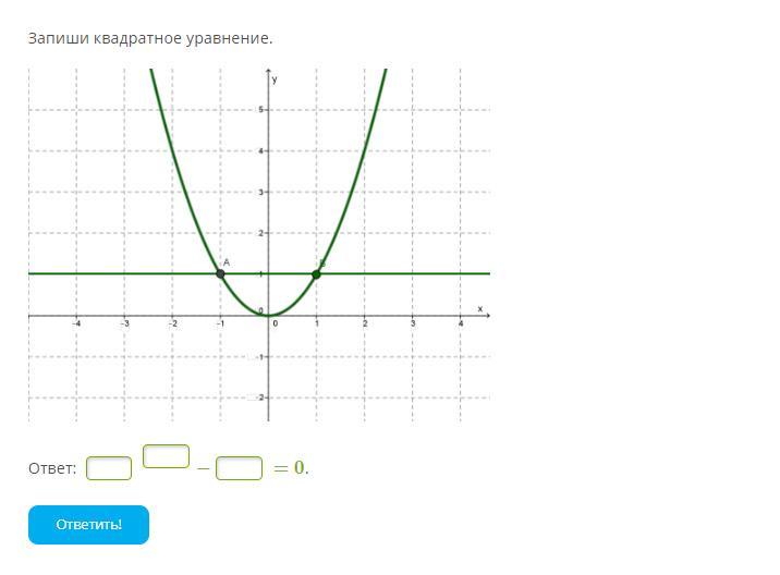 По формуле a(x-x1)(x-x2),где a находится в точке y(1),и равен 1,при x1=-1,и x2=1,получаем: