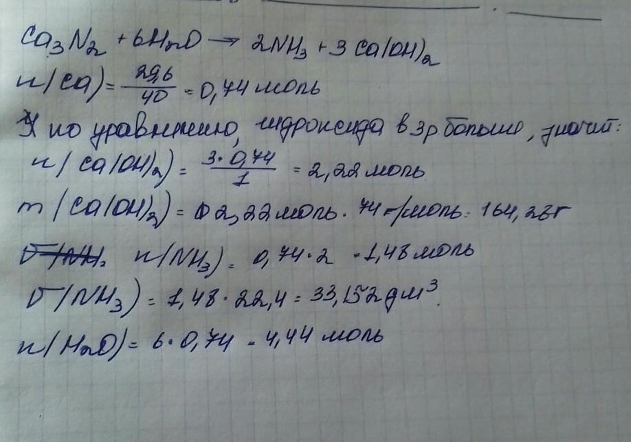 Cа3N2 + 6H2O = 2 NH3 + 3 CA(OH)2