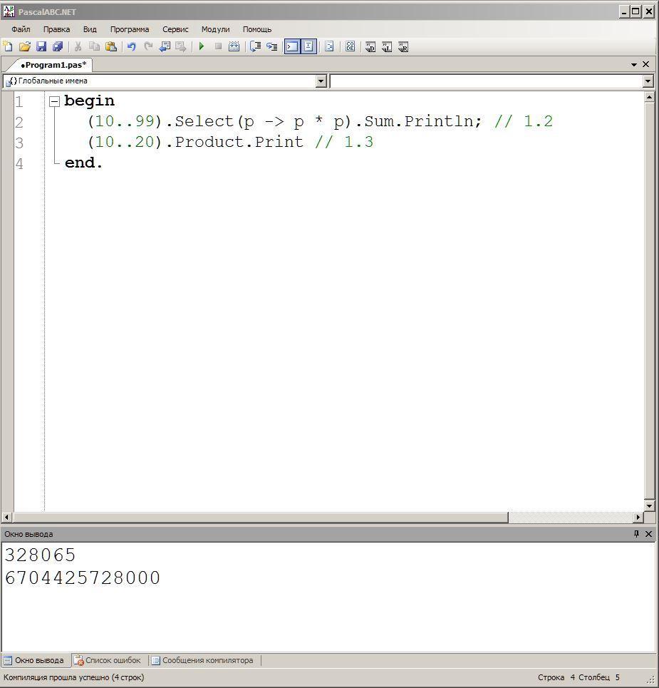 (10..99).Select(p -> p * p).Sum.Println; // 1.2