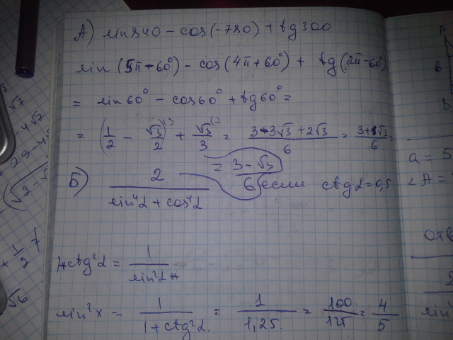 Б)2:(sin^4•a+cos^4•a ,если ctg•a=0,5