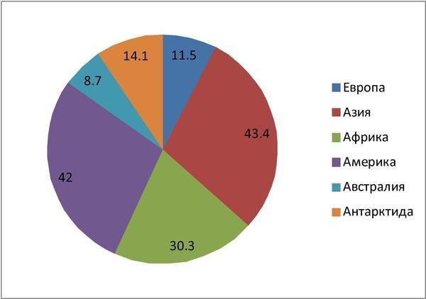 Постройте круговую диаграмму, отражающую долю населения Южной Азии в общей численности населения земли.