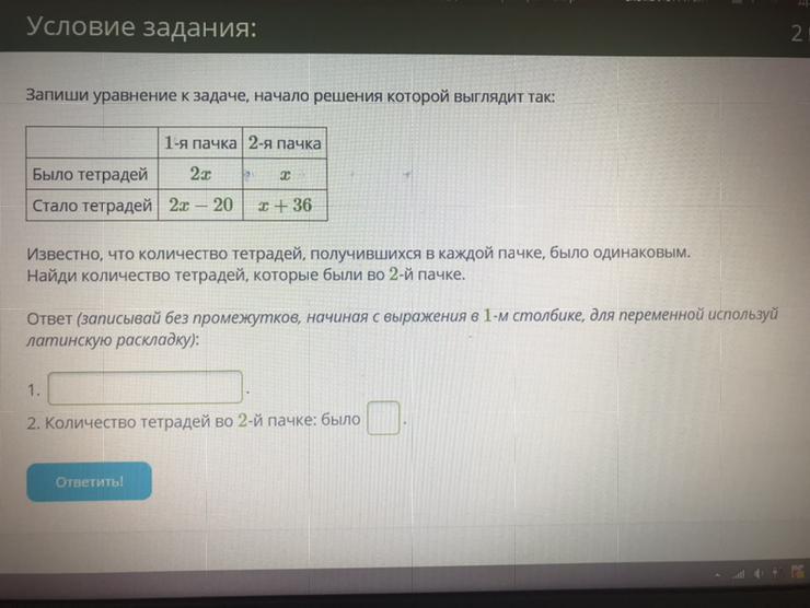 Следовательно во второй пачке было 56-36=20 тетрадей