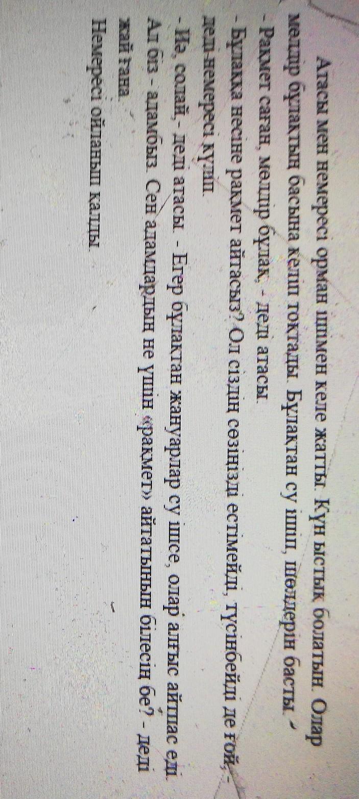 Мәтіннің мазмұны бойынша пікір білдіруге бағытталған 1 сұрақ құрастырып жаз және жауап бер✍️✍️