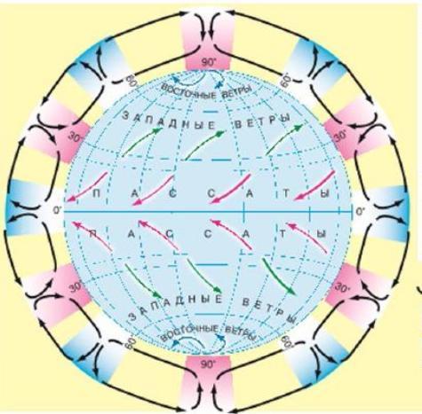 Ветры, скорость которых составляет 5-6 м/с, но которые ослабевают при их схождении вблизи экватора называют пассаты.