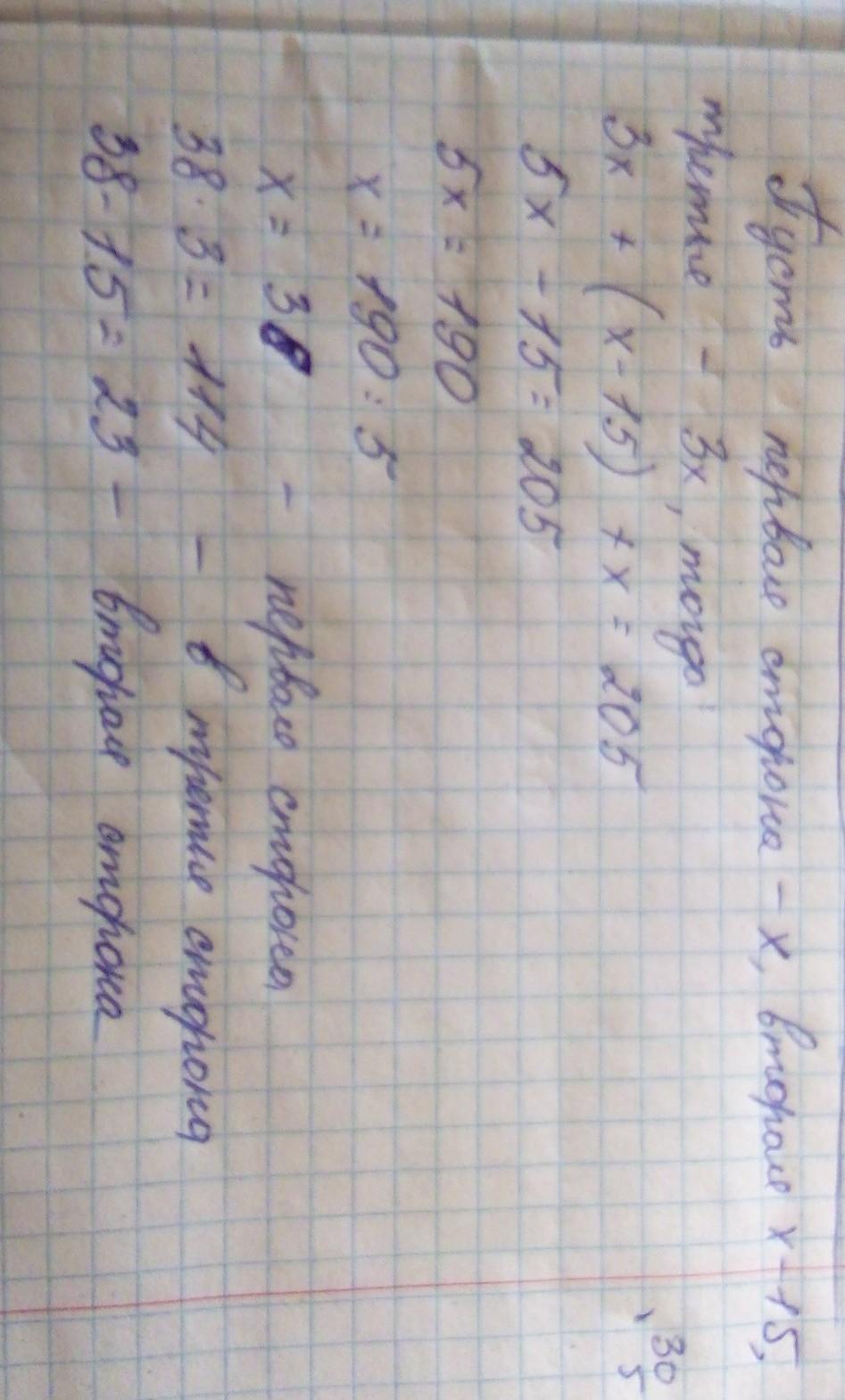 1. Периметр треугольника 205 см одна сторона в 3 раза меньше другой стороны и на 15 см меньше третьей. Найти стороны треугольника.