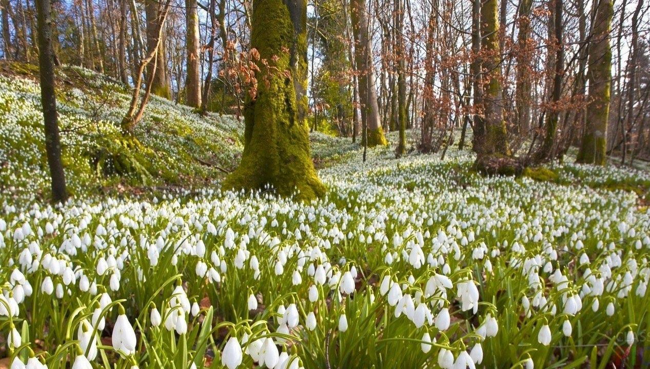 Весенними днями в лесу царила тишина.И лишь иногда слышался звук крыльев.Вся лесная подстилка была усыпана белыми как снег подснежниками..Я любил проводить там время.От цветов исходил приятный аромат.Стволы деревьев были облеплены плотным мхом.На веточках уже набухали почки,а кое-где уже даже распустились цветы.Хорошо в лесу весной!