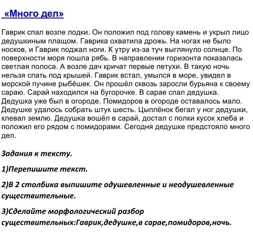 одушевлённые:он,Гаврик,рыбёшек,дедушка,цыплёнок.