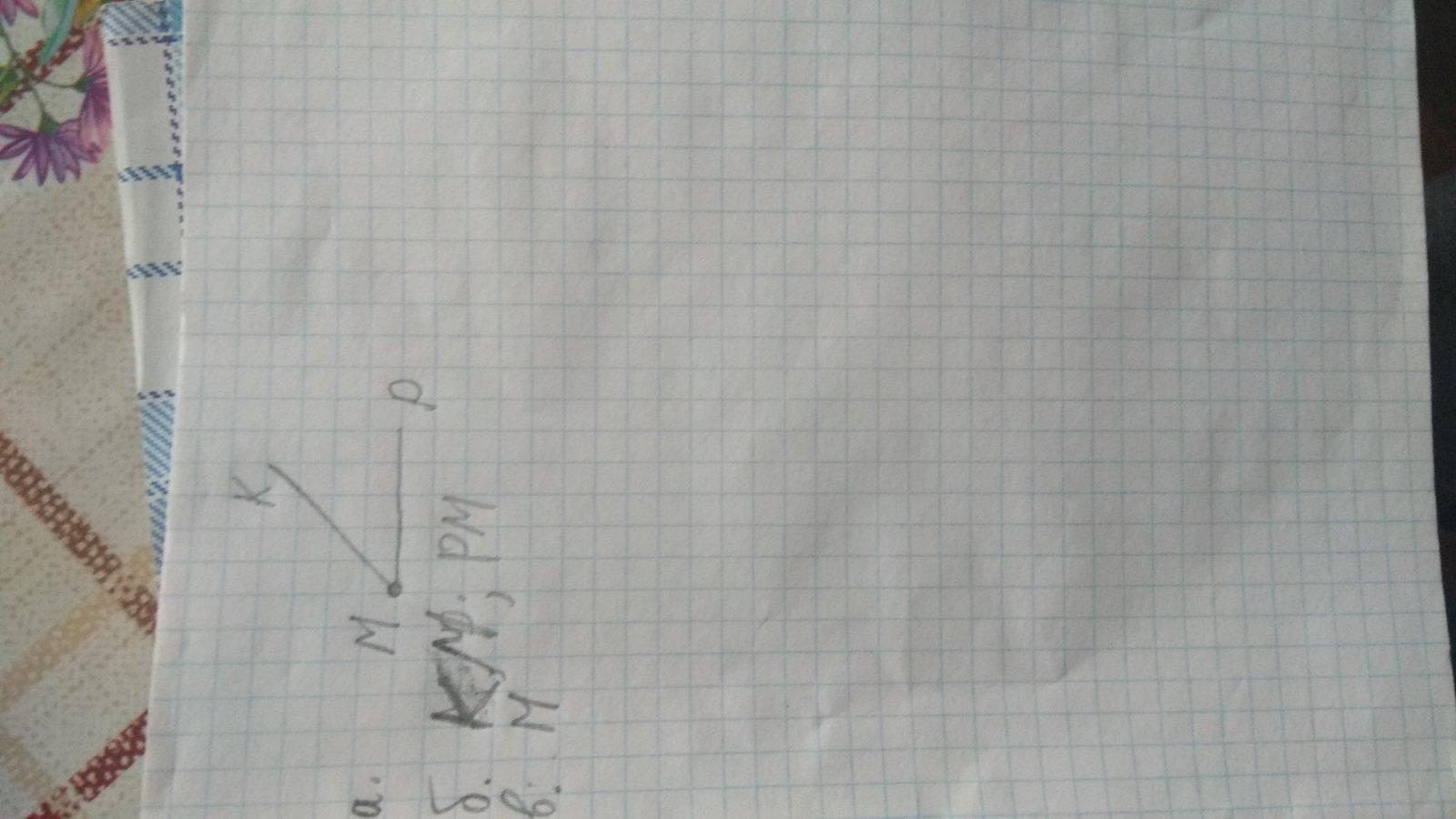 Чертите любой угол, там где будет вершина или самый кончик угла там поставьте букву М.