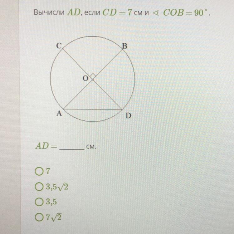 по т.Пифагора AD=sqrt(R^2 + R^2)=3,5*sqrt(2)
