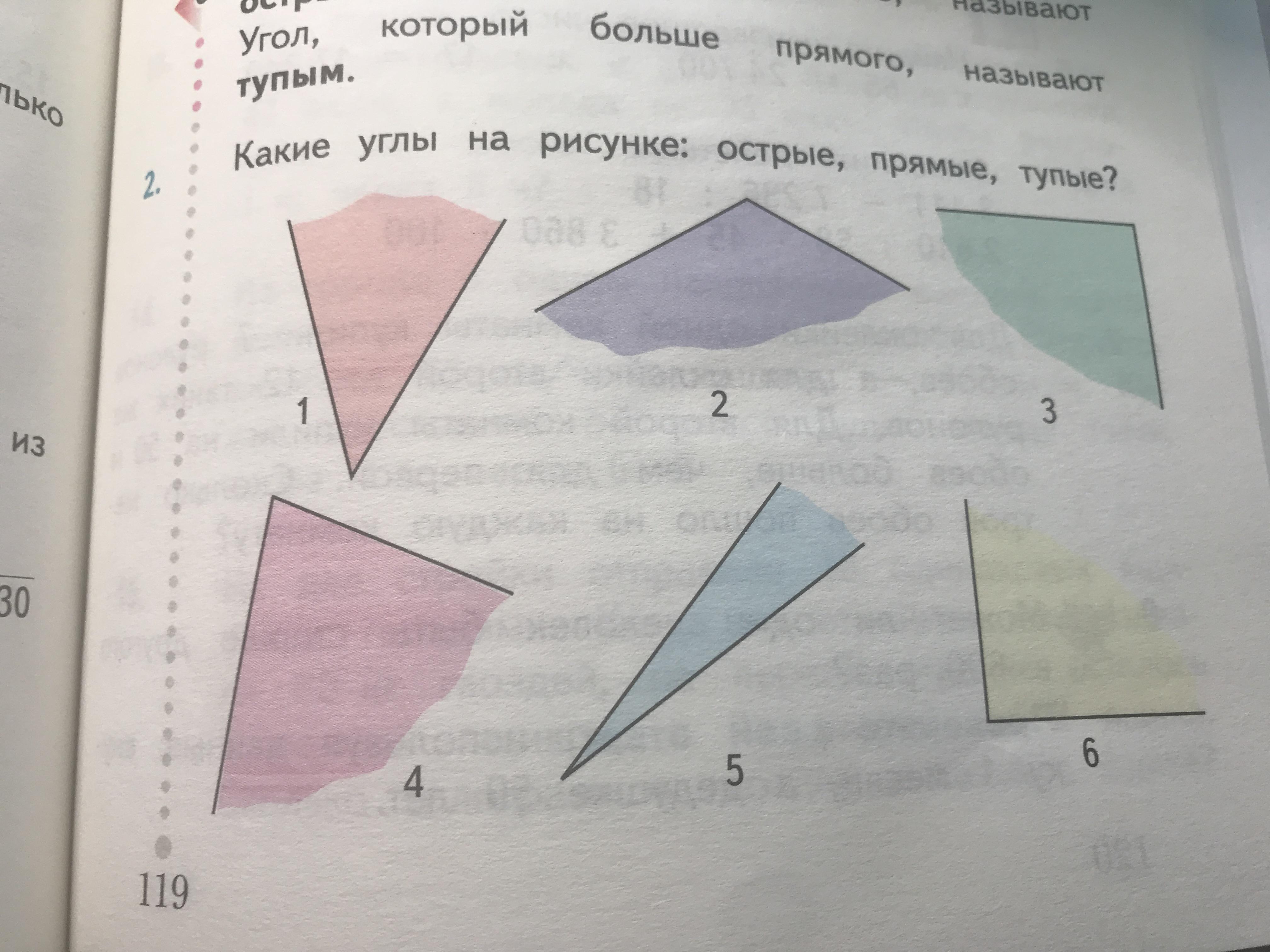 1 острый 2 тупой 3 прямой 4 острый 5 острый 6 прямой