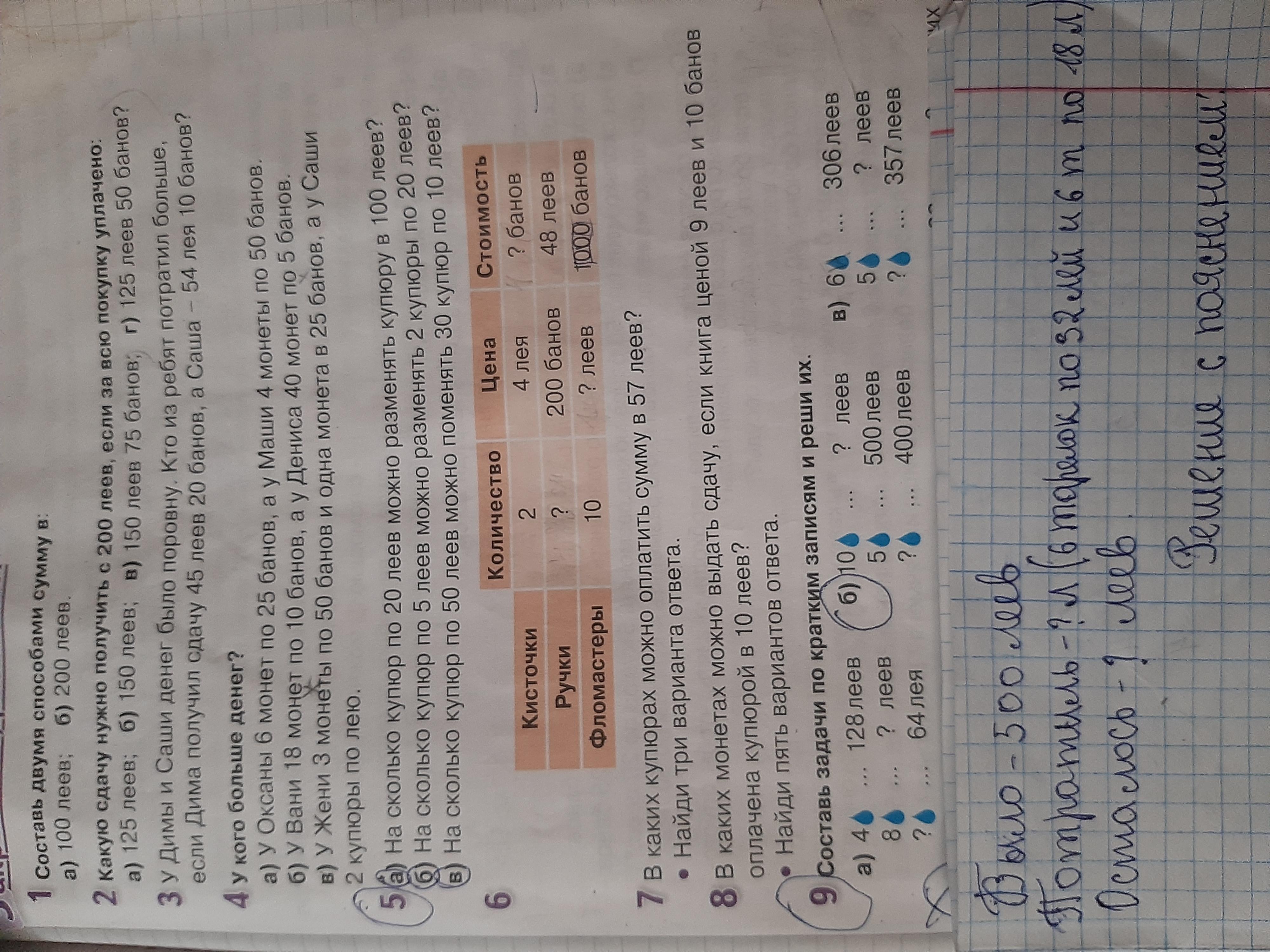 в 5 а) 100:20=5 купюр б) (2*20):5=8 купюр в) (30*10):50=6 купюр