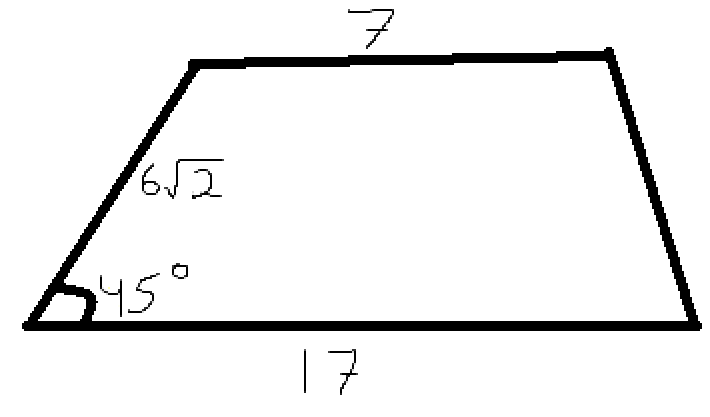 АВСД трапеция АВ=6корень из2, из верш В опускаем высоту ВК на основание АД. Треугольник АВК прямоугольный. угол ВАК=45.