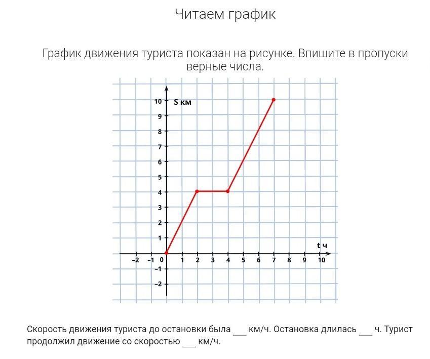 График движения туриста показан на рисунке. Впишите в пропуски верные числа.