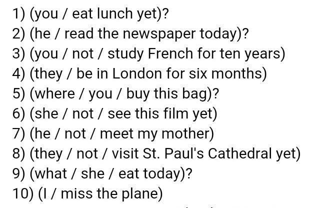 Составить 10 предложений в present perfect. Утверждение, вопрос, отрицание.