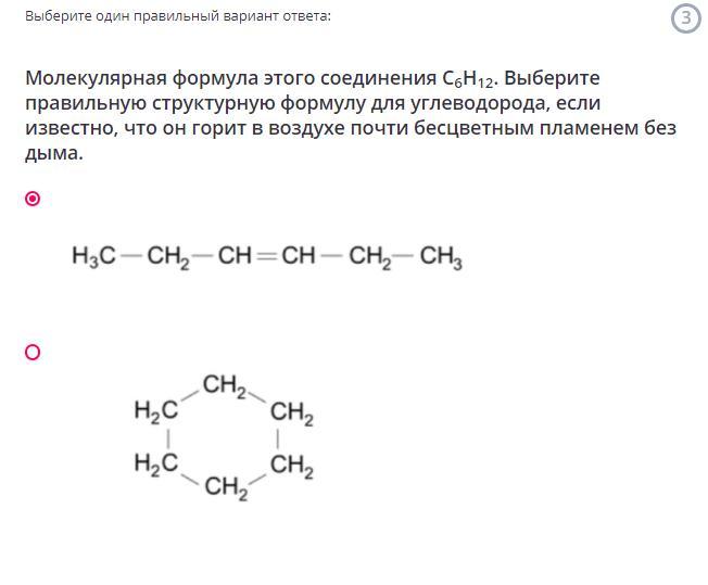 Структурная формула C₆H₁₂ - Циклогексана показана внизу там где 2)