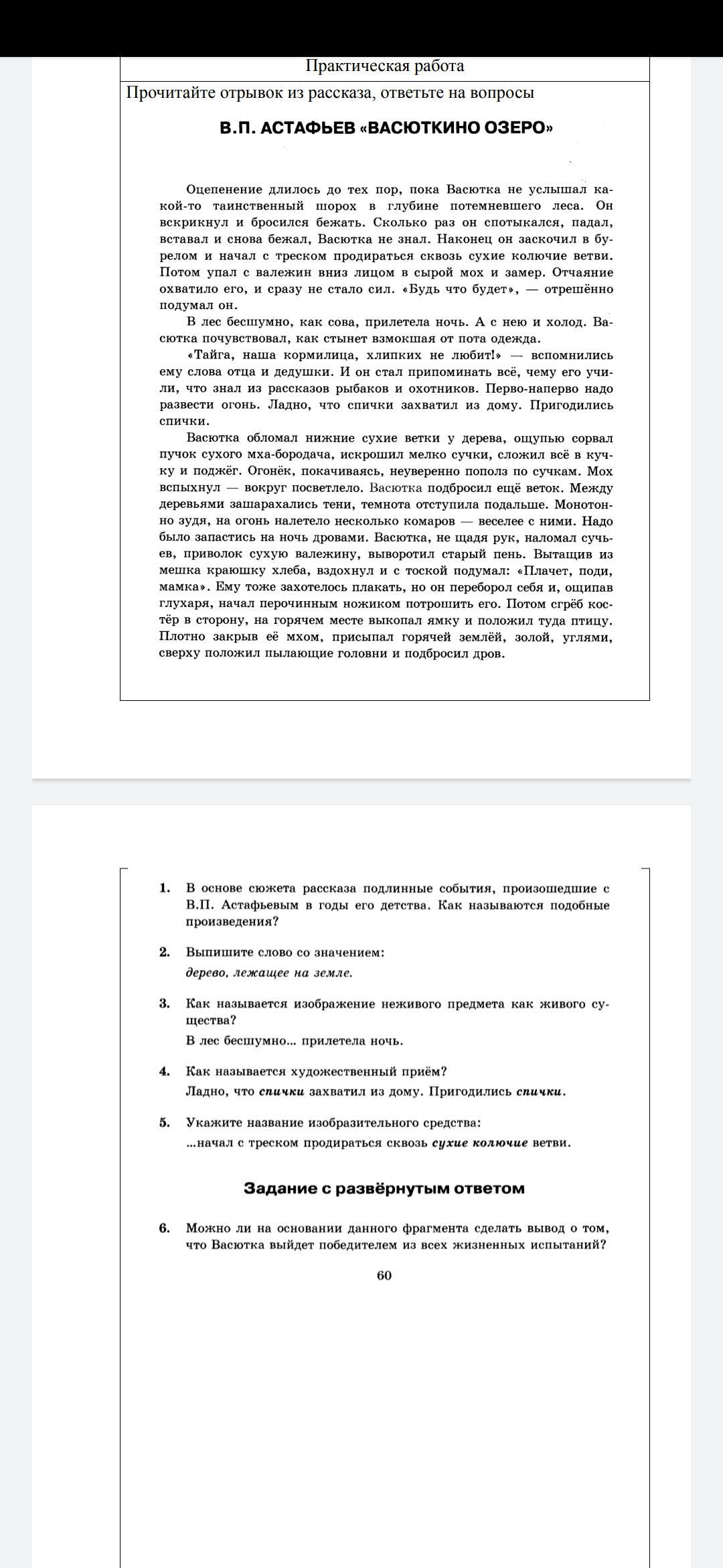 6. Васютка сумел перебороть свой страх, собрался с мыслями - впомнил наставления отца. Потом принял решение, обустроил себе ночлег, приготовил и запас еду. Он сумеет преодолеть все трудности, справится с жизненными испытаниями, ведь у него есть воля, навыки выживания, смелость и житейская мудрость.