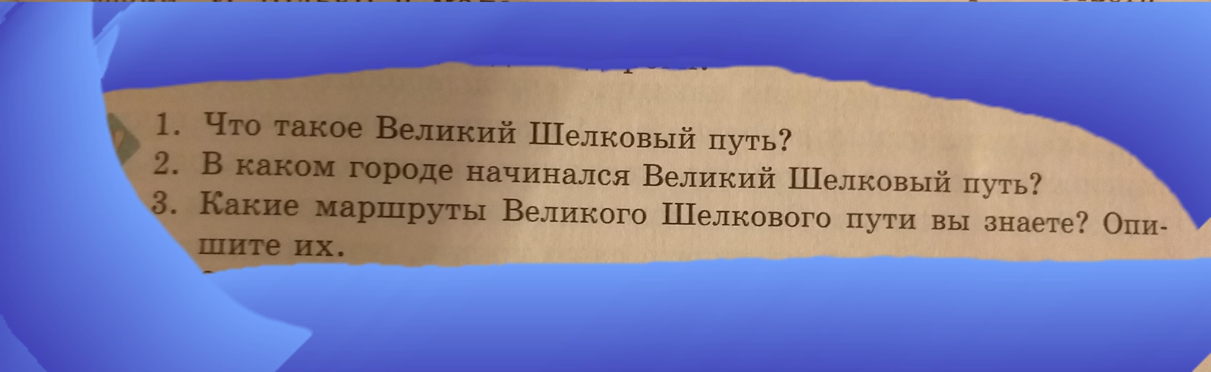 1) Вели́кий шёлковый путь — караванная дорога, связывавшая Восточную Азию со Средиземноморьем в древности и в Средние века. В первую очередь использовался для вывоза шёлка из Китая, с чем и связано его название.