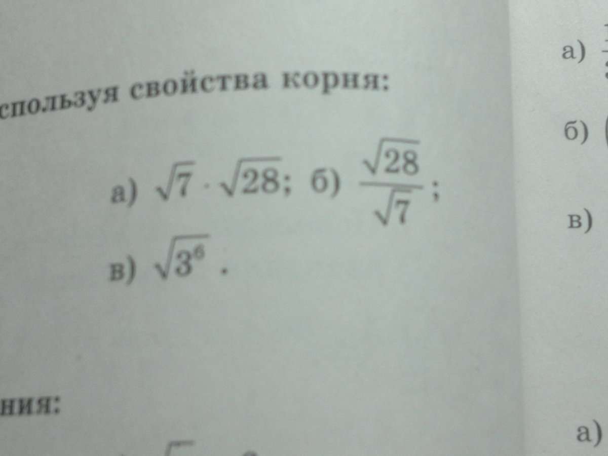 4) корень(7)* корень (28)= корень (7)* корень (7)* корень (4)= корень (7^2)* корень (4)=7*2=14