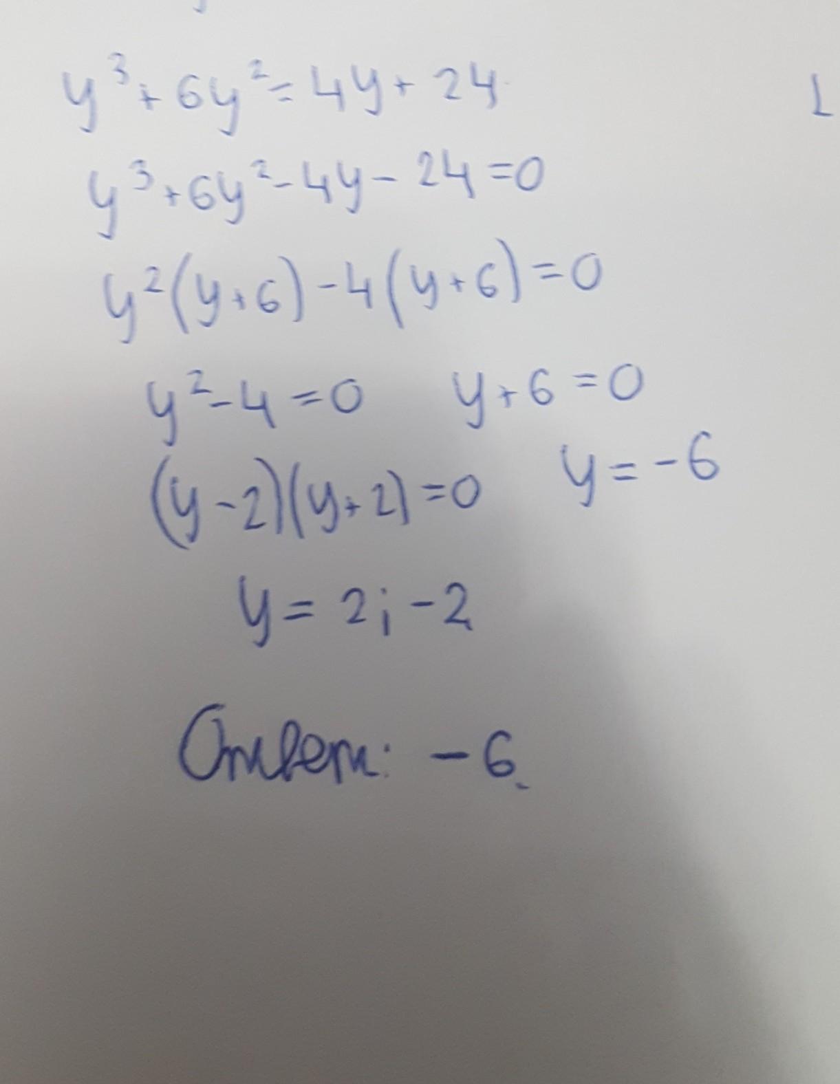 Решите уравнение y^3+6y^2=4y+24 Если уравнение имеет более одного корня, в ответ запишите меньший из корней.