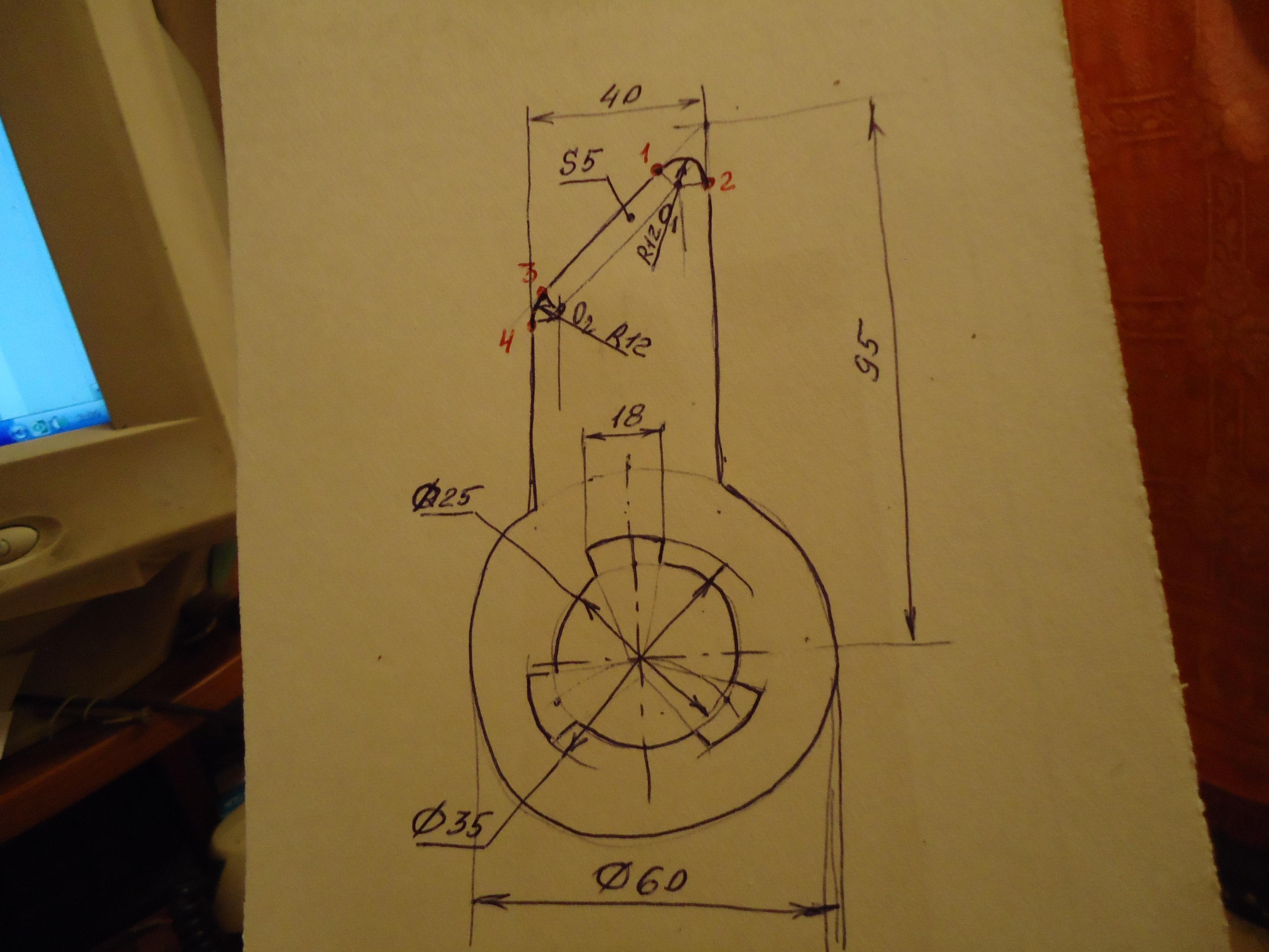 Радиусом 12 мм проведите дуги линий сопряжения.