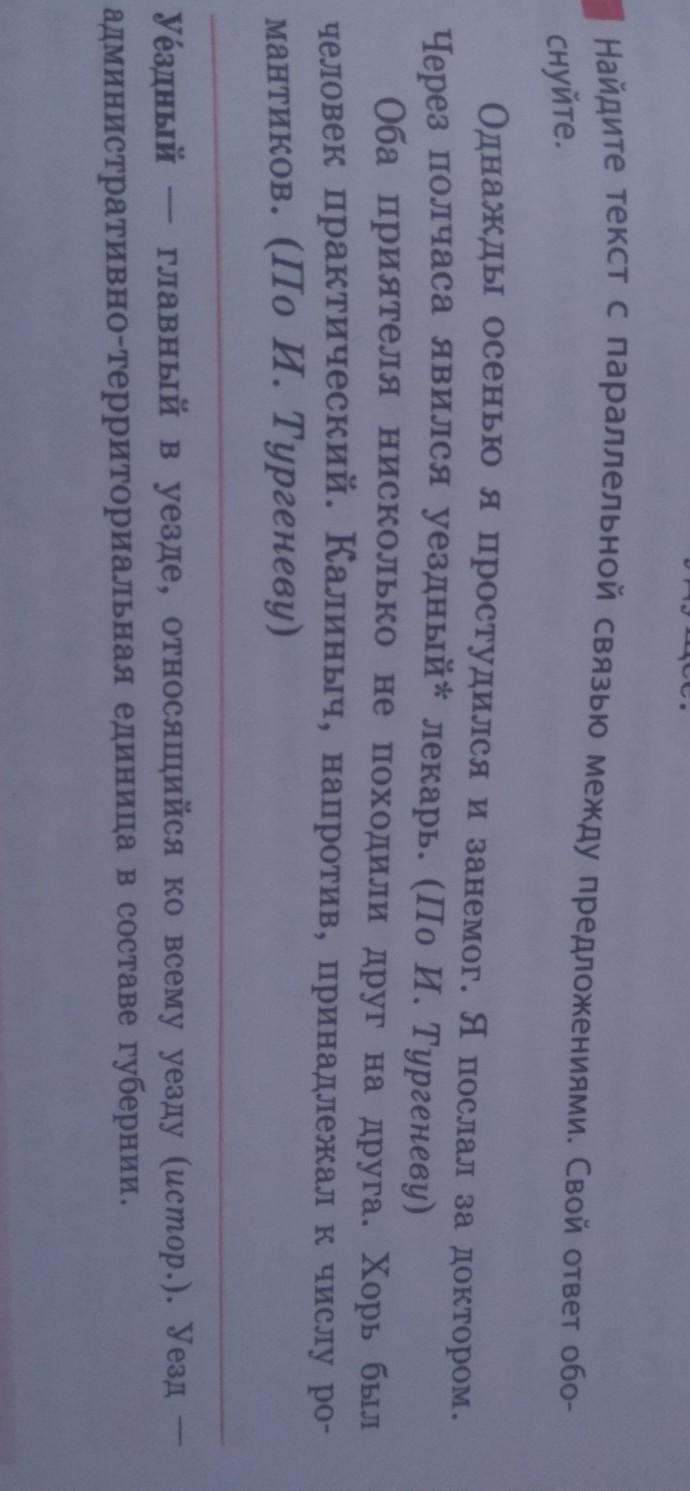 В этом тексте с параллельной связью первое предложение несёт новую информацию, которая получает развитие в каждом из последующих предложений, причём между собой эти последующие предложения не соединяются, каждое из них соединяется с первым, информация из которого становится «данным» для всех последующих.