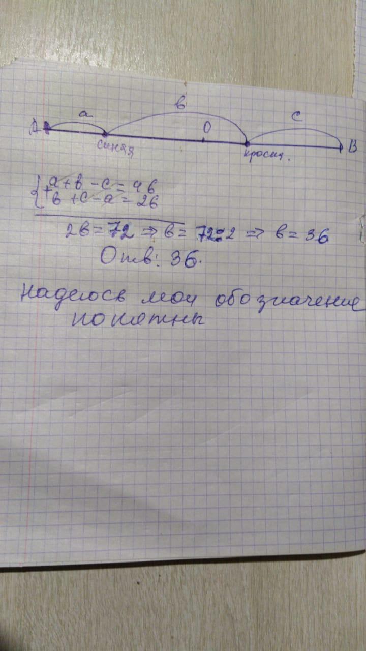 Помогите с задачей!!! На ленте по разные стороны от середины отмечены две тонкие поперечные полоски: синяя и красная.