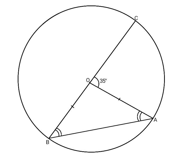 ПОЖАЛУЙСТА ПОМОГИТЕ С объяснением(кратко)Отрезок BC – диаметр окружности с центром O. На окружности взяли точку A так, что ∠AOC = 35°. Найдите градусную меру угла BAO. ( сделать рисунок)