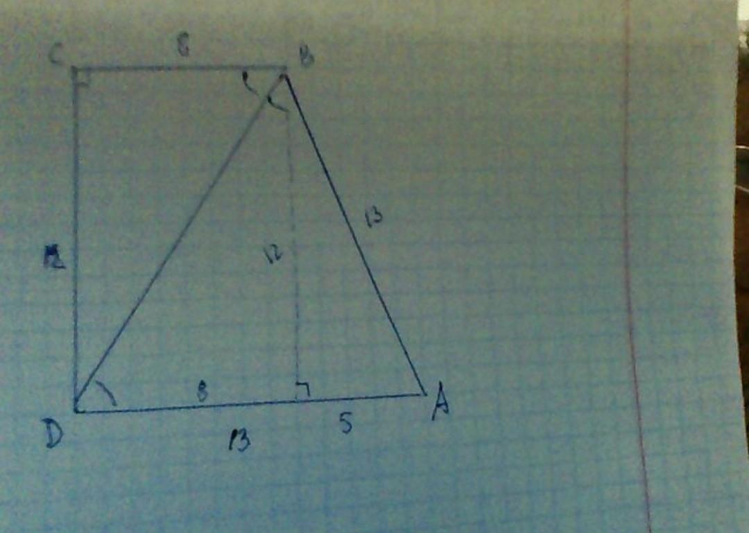 ΔАВК - прямоугольный; АК=АD-DК=13-8=5 см; ВК²=АВ²-АК²=169-25=144.