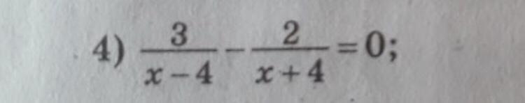 Розвяжіть рівняння 3/x-4- 2/x+4=0