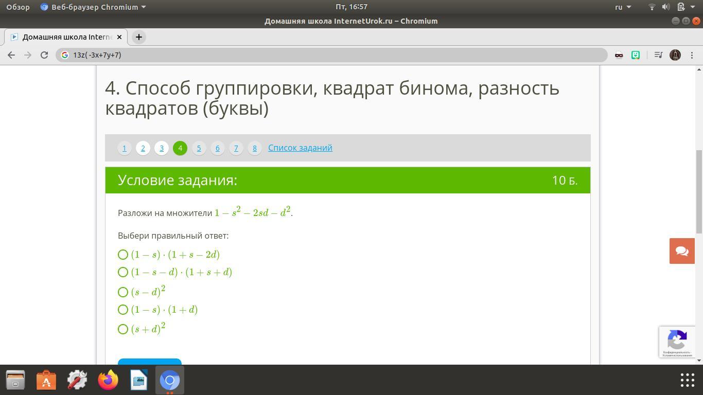 = 1-(s+d)^2 = (1-(s+d)*(1+(s+d)) = (1-s-d)*(1+s+d)