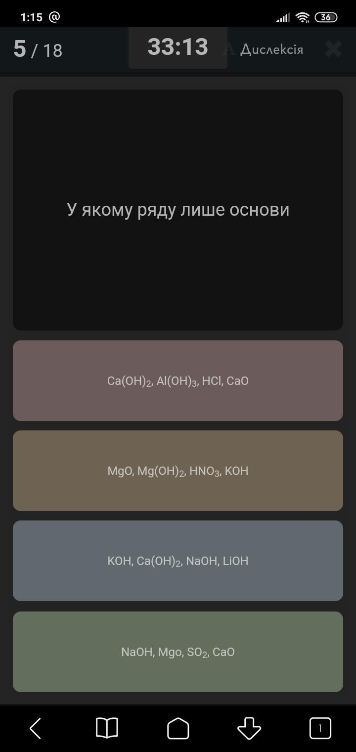 Третій рядок, KOH, Ca(OH)2, NaOH, LiOH