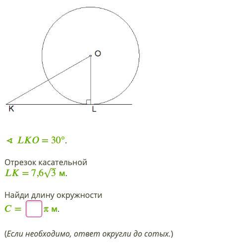 угол LOK =60 , катет лежащий против угла в 60 градусов равен LK=LOкорней из 3 следовательно LO=R=7.6