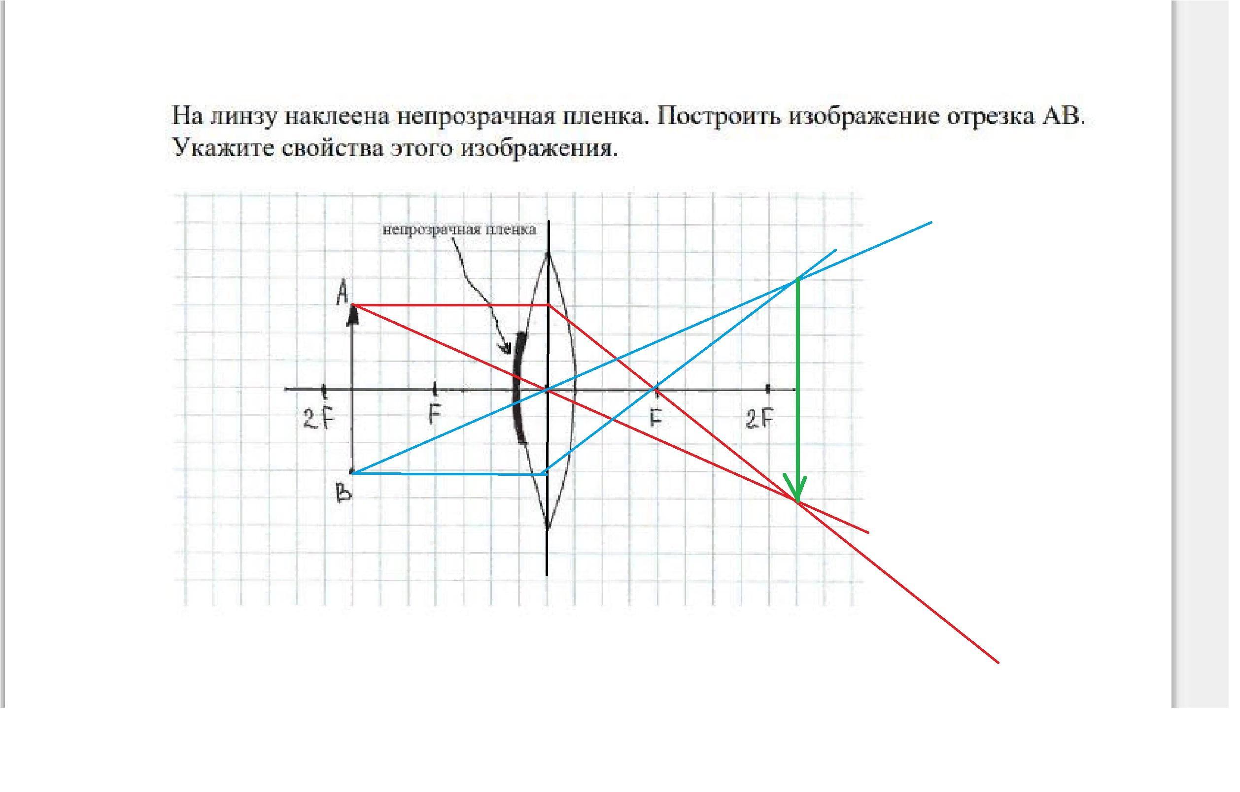 На линзу наклеена непрозрачная пленка. Построить изображение отрезка АВ.