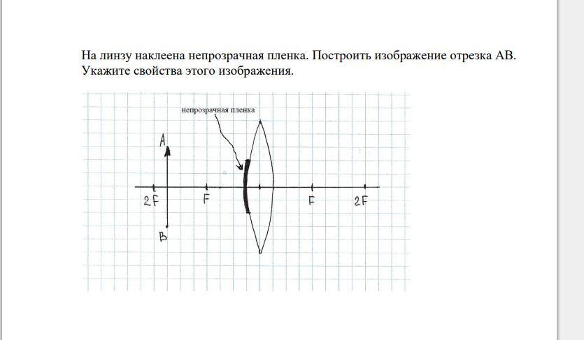 Отдаю последние баллы. На линзу наклеена непрозрачная пленка. Построить изображение отрезка АВ.