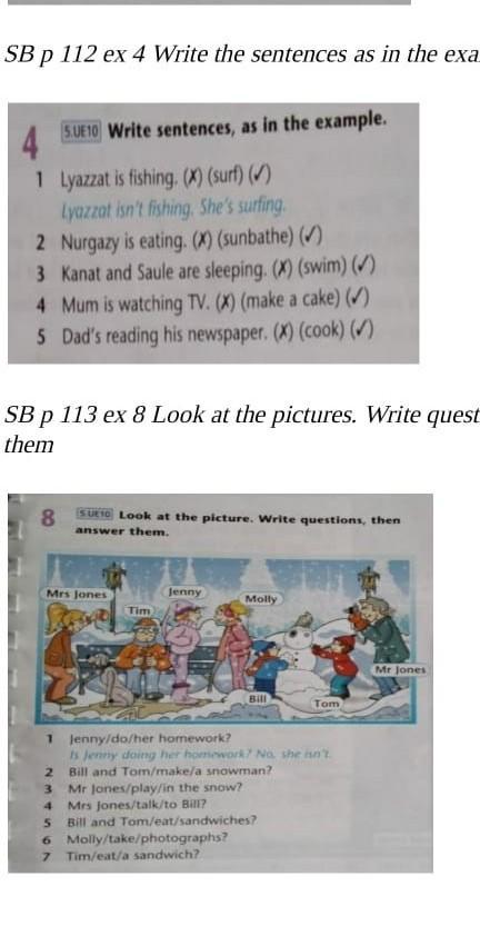 5) Are Bill and Tom eating sandwiches? No, they aren’t .