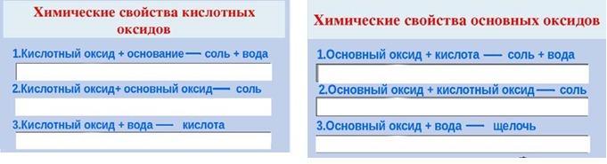 Впишите в пустые ячейки уравнения реакций, характеризующие химические свойства оксидов, согласно данному ниже шаблону.