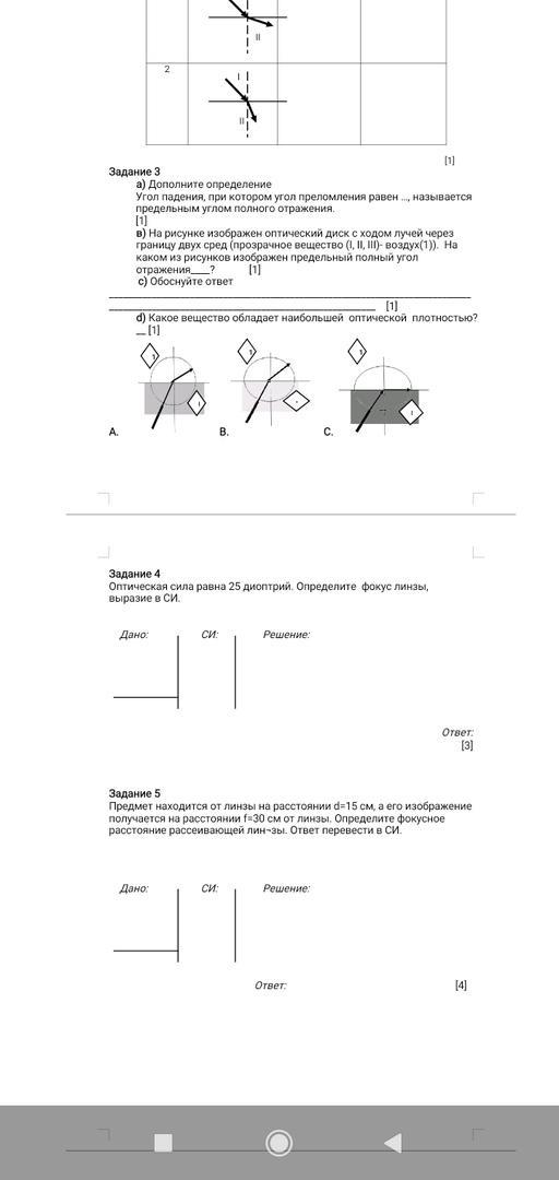 границу двух сред (прозрачное вещество (1, II, III)- воздух(1)). На