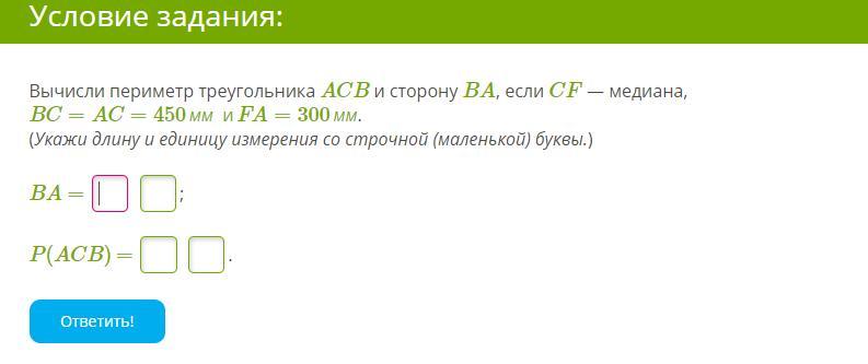 Т.к. медиана СF делит основание тр.АСВ ВА пополам, то ВА=2FA