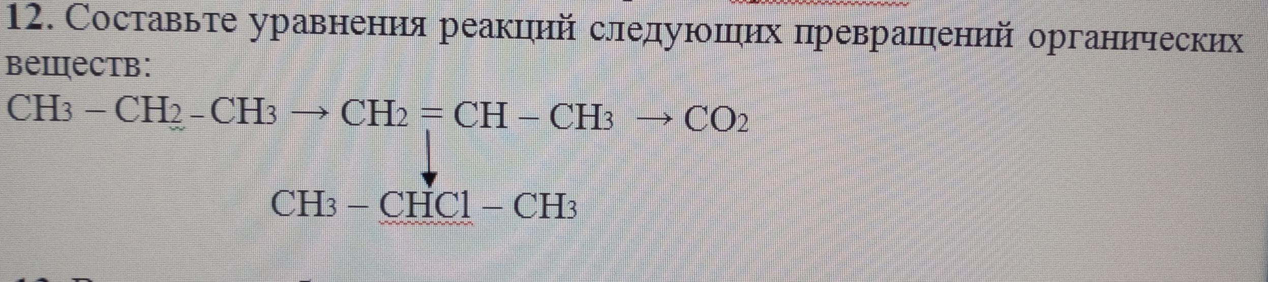 СН3 – СН2 – CH3 → СН2 = СН – CH3 → СО2
