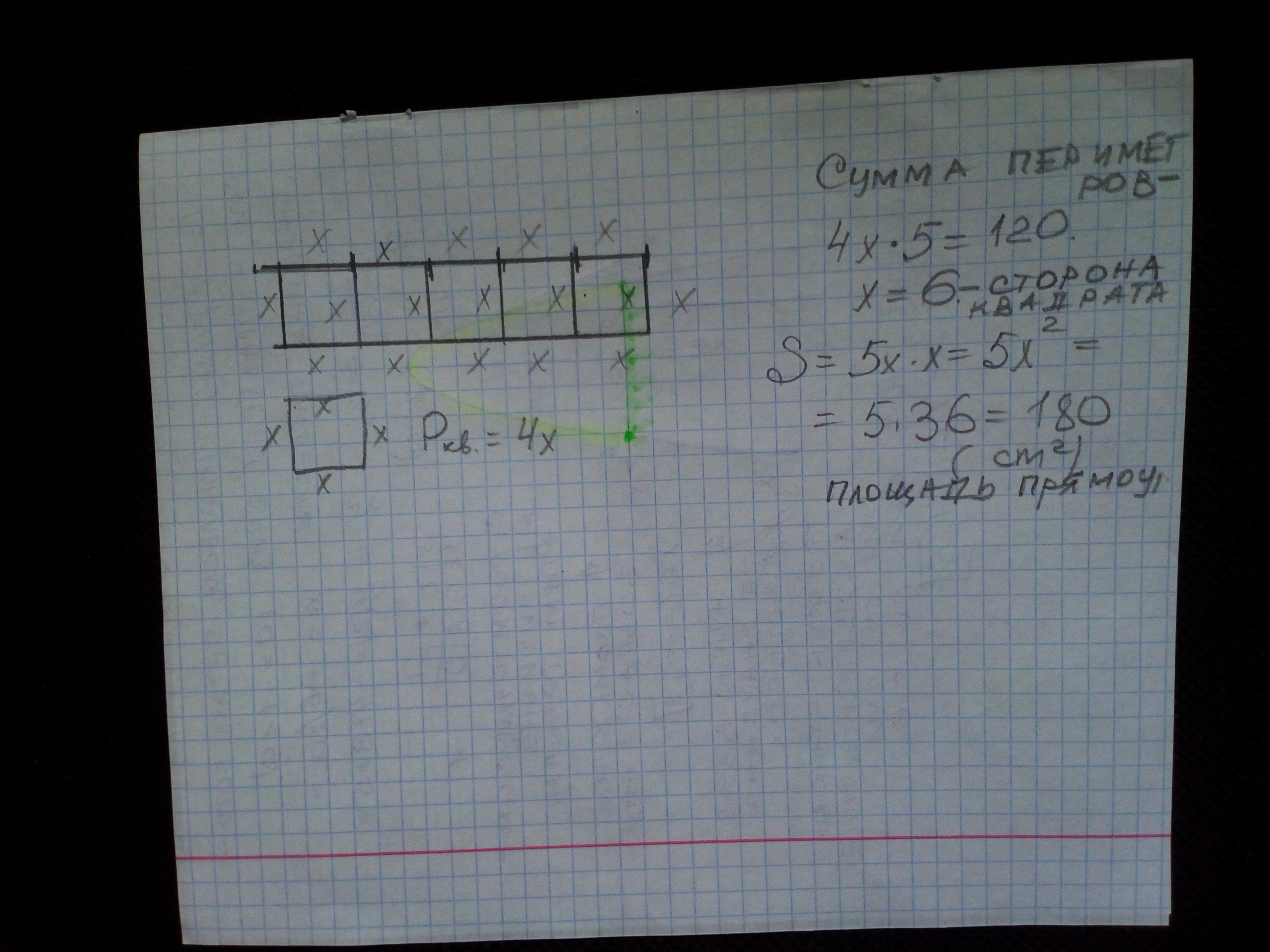 24:4=6 (см) сторона каждого квадрата и ширина прямоугольника
