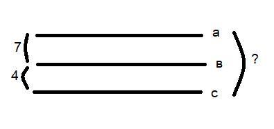 На рисунке расстояние между параллельными прямыми A и B равно 7 см,а расстояние между параллельными прямыми B и C равно 4 см. Чему равно расстояние между прямыми A и C? Дано решение и ответ