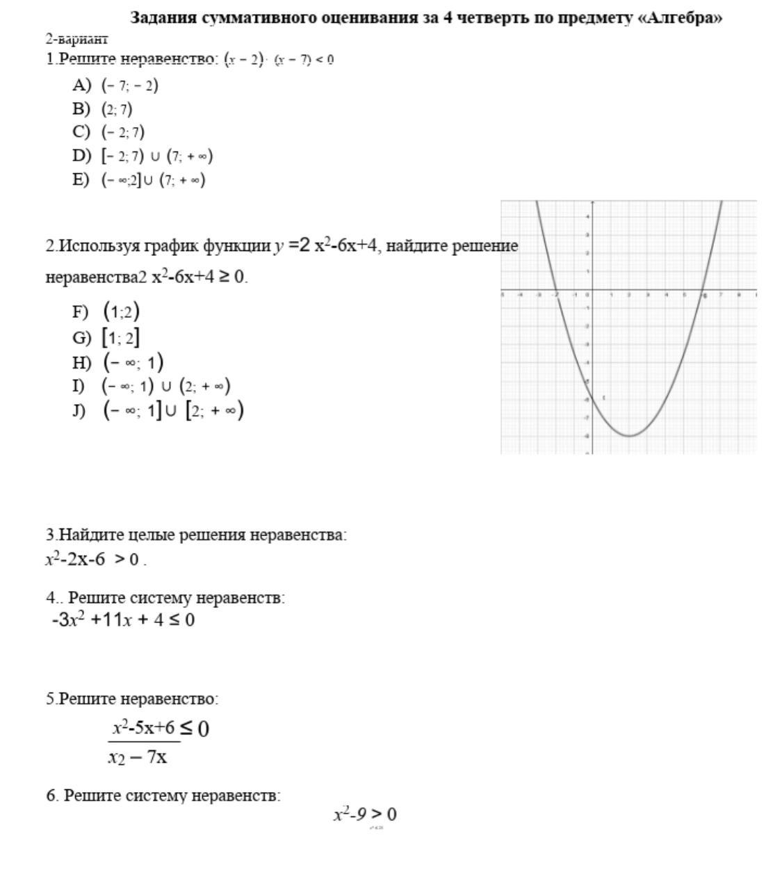 5. Решите неравенство : (x² -5x +6) / ( x² -7x) ≤ 0